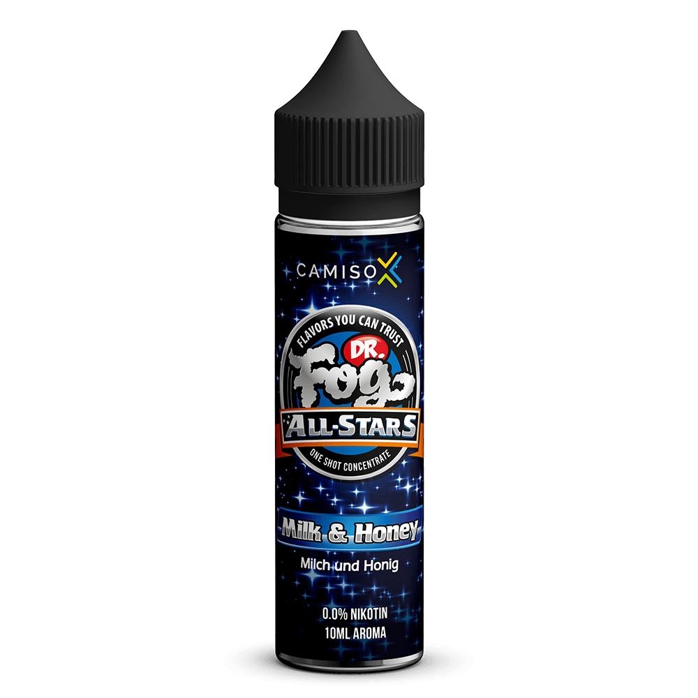 Erleben Sie das Dr. Fog Aroma Longfill – Milk & Honey und lassen Sie sich von der harmonischen Kombination aus warmer Milch und süßem Honig verzaubern.